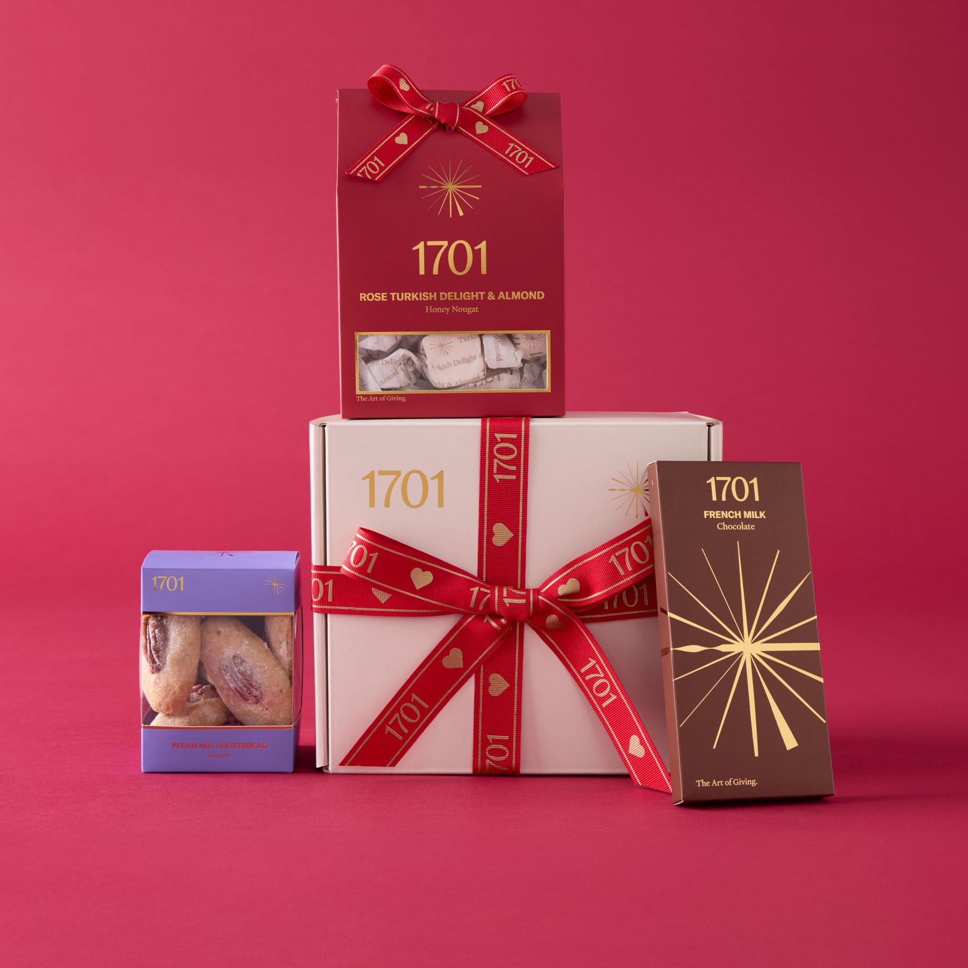 A generously curated gift featuring a selection of 1701 favourites. Beautifully presented and finished with our signature heart ribbon - a romantic expression of thoughtfulness and care.